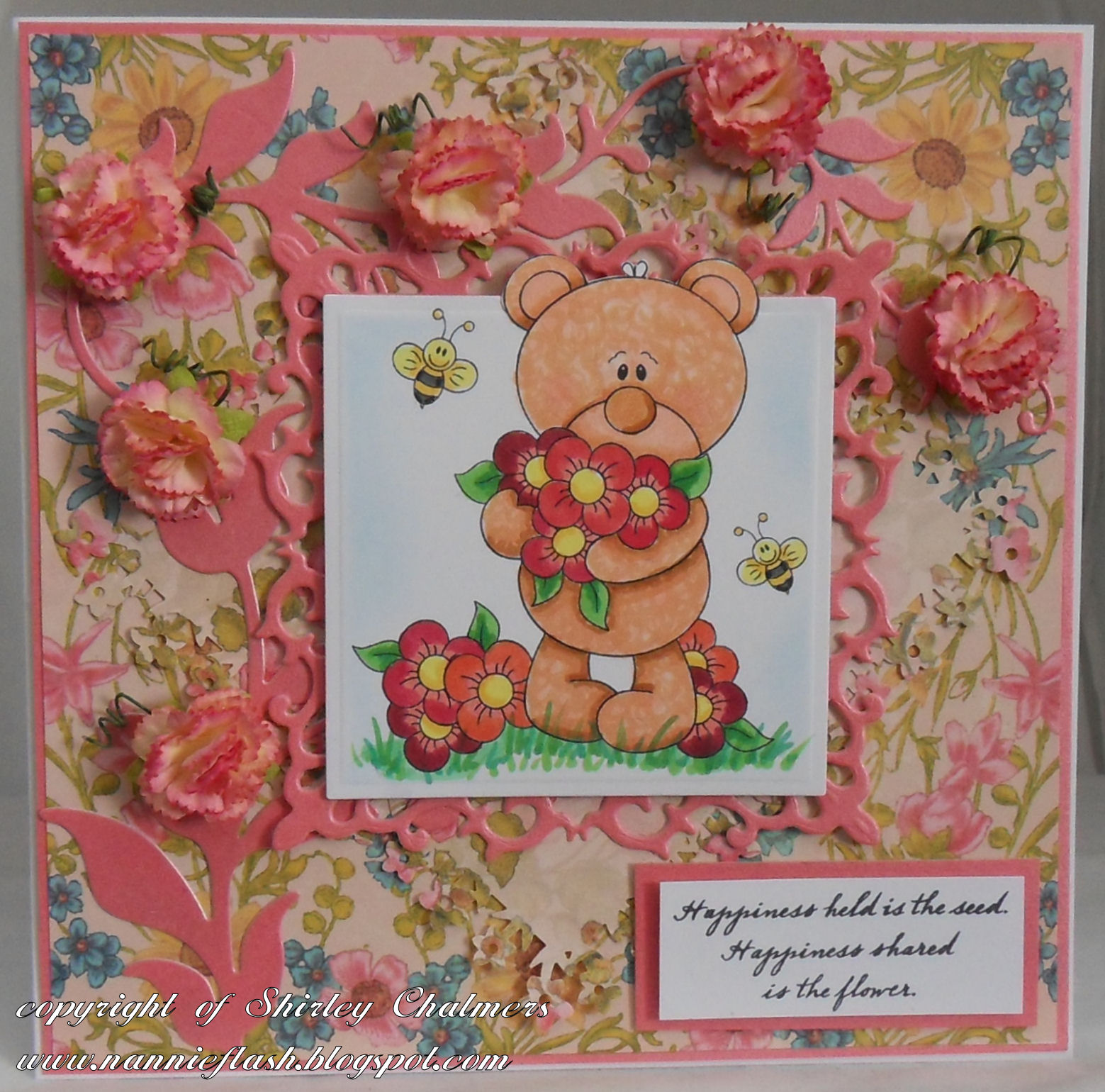 Well wasn't I right arnt they gorgeous and I do hope that you will pay a visit to the girls and leave them some love for all their hard work, Im not sure how I would manage without them. I also want to thank Lorraine for joining us this week and to Janie who is having lots of problems at the moment, I carn't thank you both enough for taking part. And I am sure that the girls will have inspired you to take part in this weeks "Flower Power" Challenge and I look forward to seeing what you come up with.
