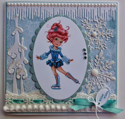 My team is complete again and I am so happy to see Sheryl back again. All of the gals has done some totally stunning creations for you to take inspiration from this week. Really stunning work! Ok, my friends time to let you all lose and play in your craft rooms. We can't wait to see what you come up with for this challenge. And remember it's fine to make a Christmas card, but the image needs to show something that is fun to do during the winter. Like skating, skiing, drink some hot chocolate, playing icehockey. Ok then, off to create!