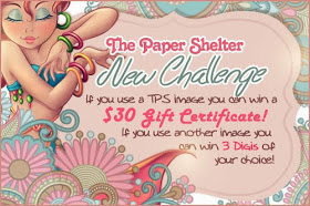 $30 to spend on their website The Paper Shelter, and believe me when I tell you they have such a fabulous selection of not only Images, but Papers and Printable's to choose from, also they often have special offers too especially their latest images which are often sold at a reduced price. But if you have not used one of their products on your card they will still give you 3 digi's of your own choice, so you really cannot loose can you? But Please be aware that you are only allowed to enter 3 cards in this Challenge and one of these must carry one of our products.