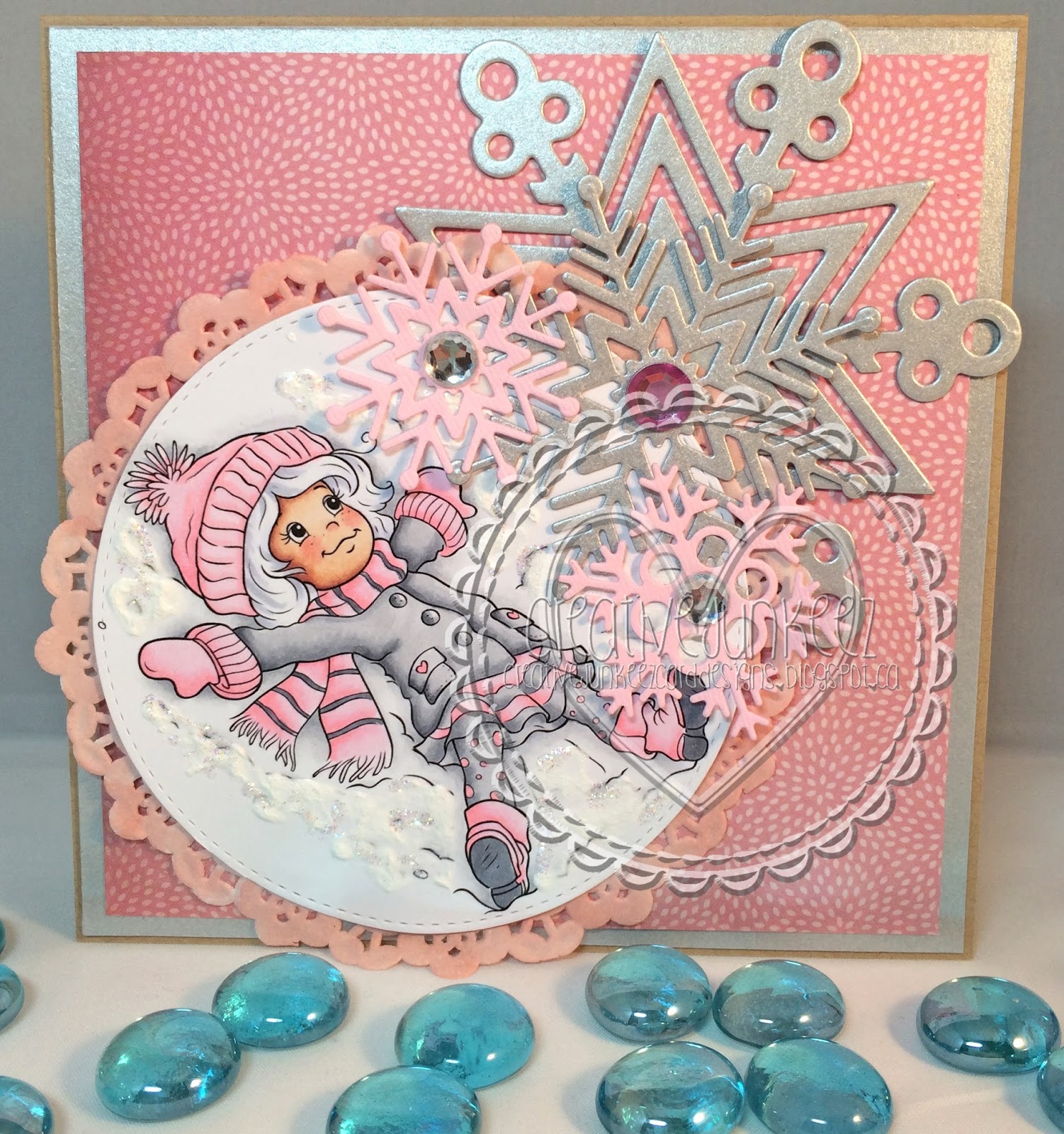Somewhere on your creation we want to see some fantastic snow flakes, On your dp's, on your image, die cuts, brads etc. Shouldn't be so hard, right?