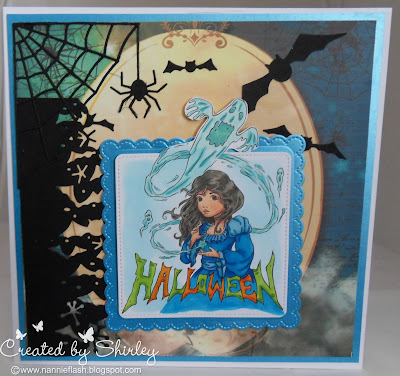 so I decided this was going to be our theme for this week, and as it seems to be celebrated in so many countries these days I thought if your family is anything like my own grandchildren and great grandsons who love to dress up and go out "trick or treating" felt it would be good idea to send them a card as well to celebrate it.
